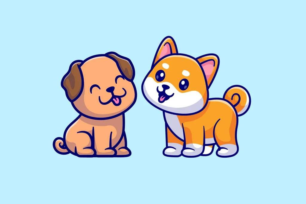 Cute Shiba Inu Dog And Pug Dog Friend Cartoon