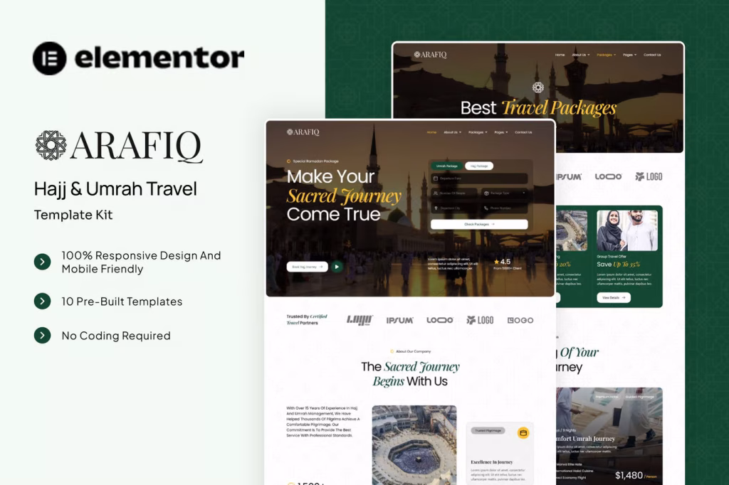 Hajj & Umrah Travel Elementor Template Kit