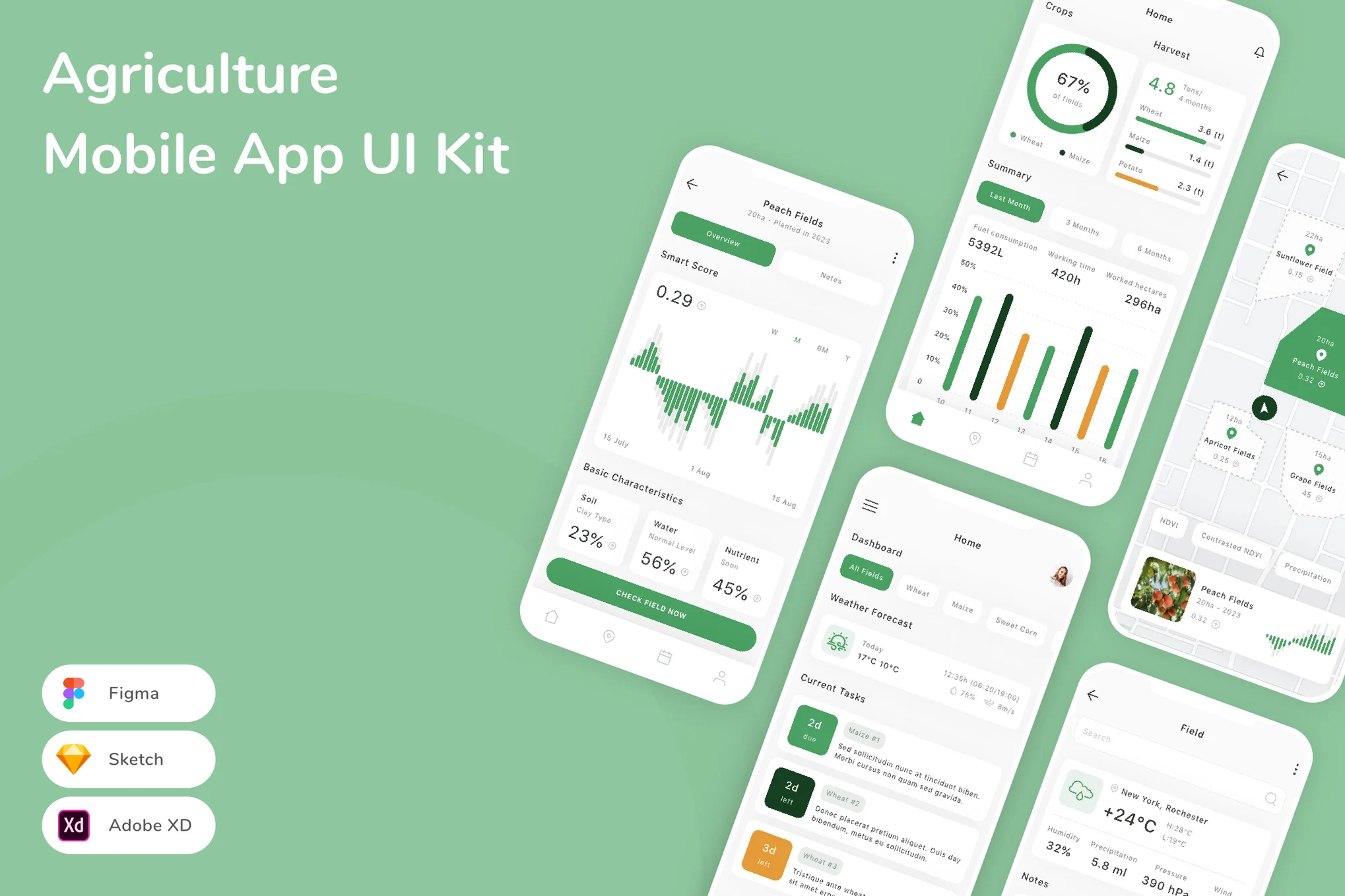 An Agriculture UI Kit can be used across different agricultural applications, including: