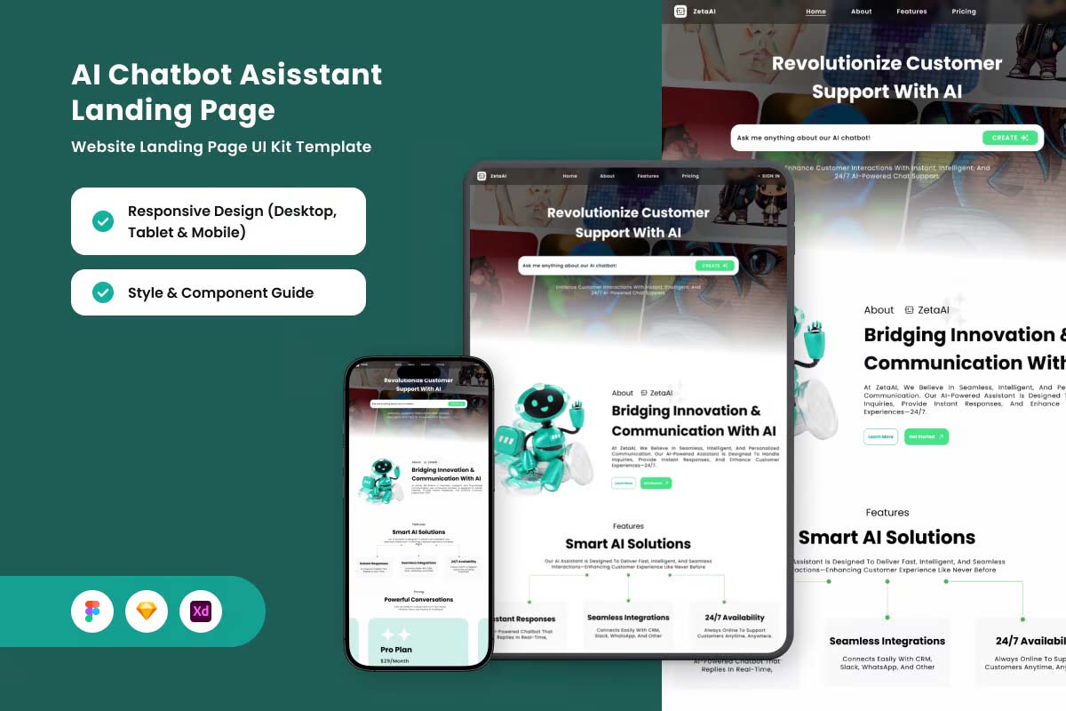 AI Chat Assistant Landing Page UI Kit Template