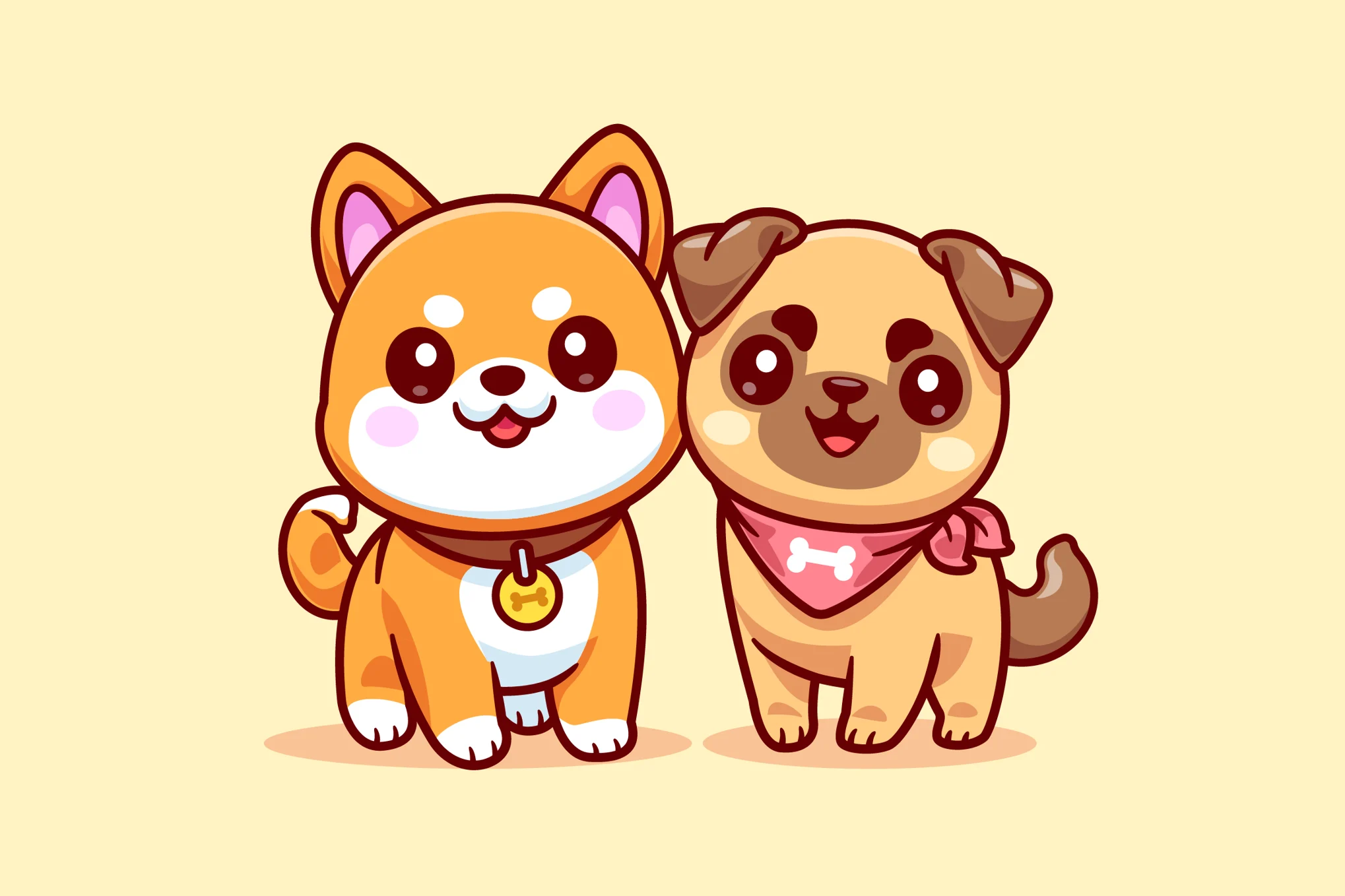 Cute Shiba Inu Dog And Pug Dog Friend Cartoon