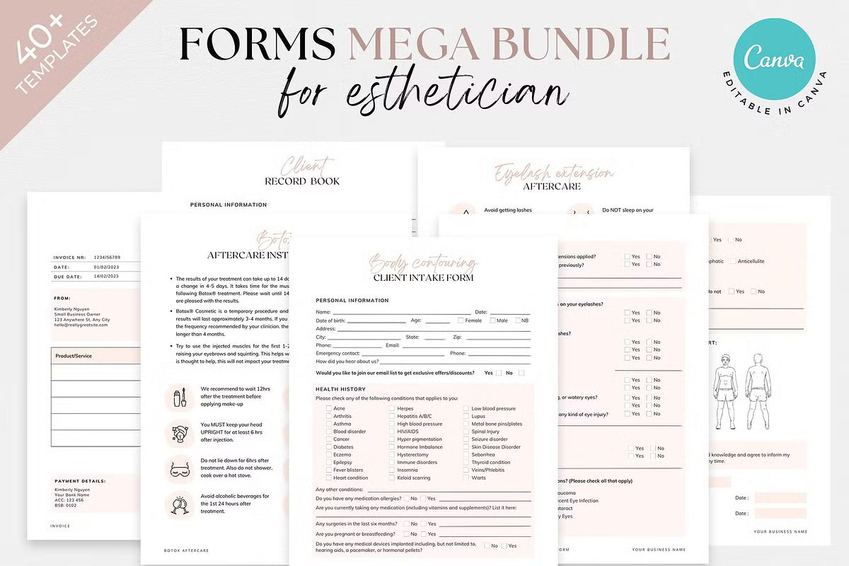 Esthetician Forms: Simplifying Client Care and Professional PracticeWhy Esthetician Forms Are ImportantEsthetician Treatments Forms TemplateEsthetician Consent FormsEsthetician Business Consent FormsAesthetician Business Forms BundleFree Esthetician (Facial) Client Intake FormBenefits for Clients and EstheticiansTypes of Esthetician FormsMaking Your Forms Client-FriendlySEO Value of Esthetician Forms