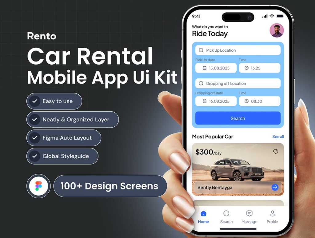 Rento Car Rental Mobile App Ui kit