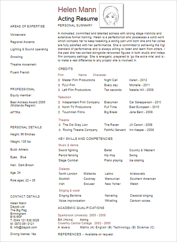 4 Acting Resume Free Download