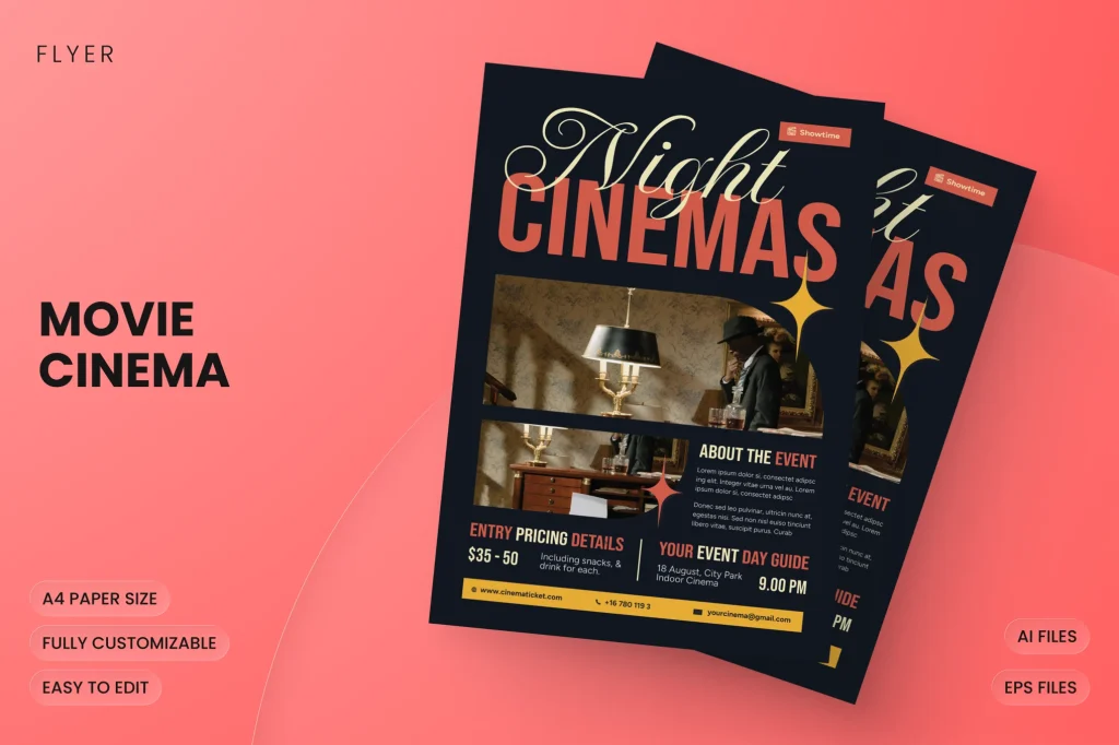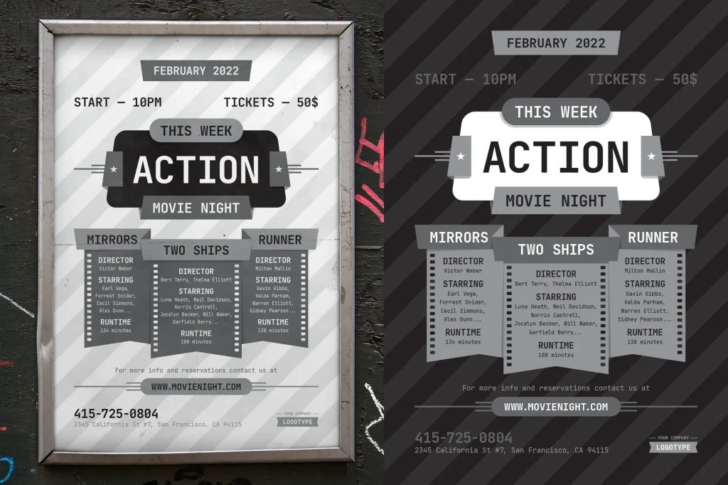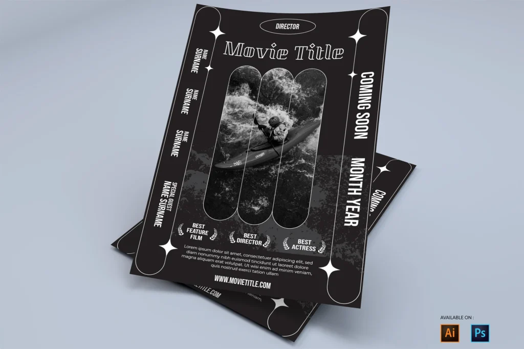 The movie title is the most important text element in any flyer. Effective Movie Flyer Designs ensure the title is prominent, readable, and well-positioned. Designers often use custom typography or stylized fonts that reinforce the movie’s genre. For instance, a thriller might use sharp, bold lettering, while a fantasy film uses decorative or mystical styles.