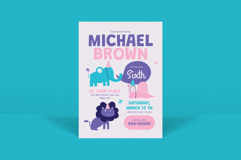 Colorful Animal Birthday Invitation