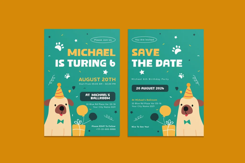 You can use free tools like Canva to design adorable pet party invitations.