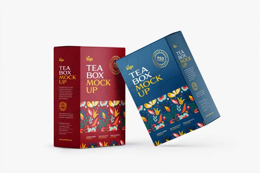 Tea box mockups are pre-made digital templates or 3D renderings that replicate the appearance of real tea packaging. These mockups can be customized to include your brand name, logo, color scheme, label design, and other packaging elements. They are often available in PSD format with smart object layers, making it incredibly easy to insert your designs.