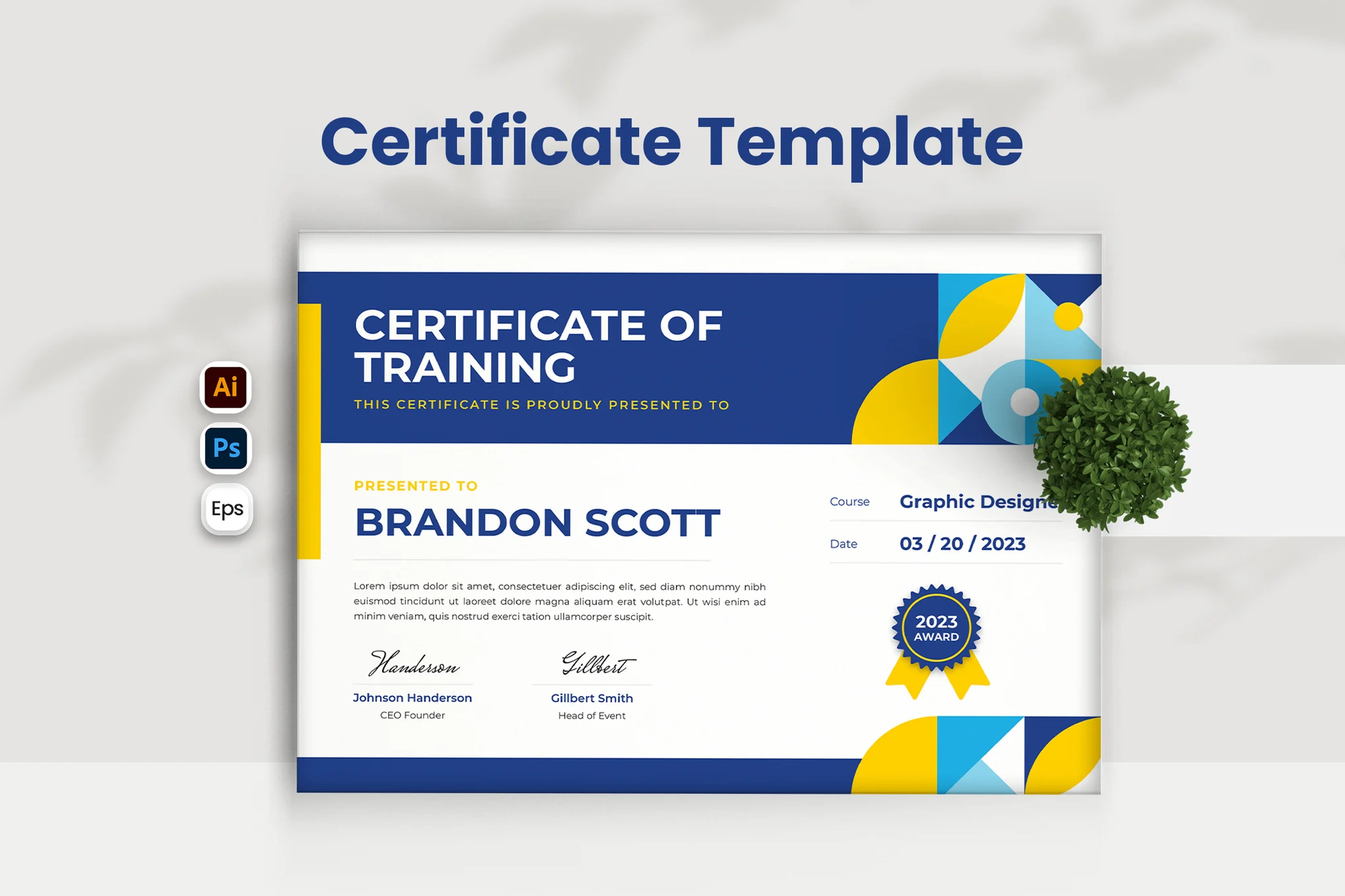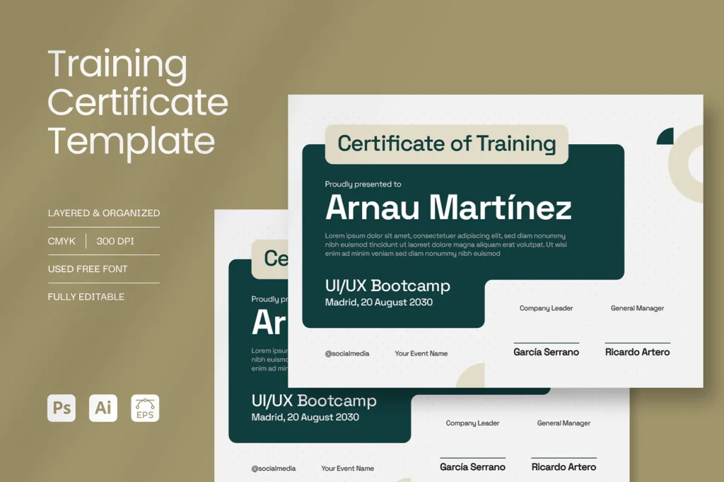A training certificate template is a pre-designed format that helps you create official certificates for participants who successfully complete a training program. These templates come in various formats — such as Microsoft Word, PowerPoint, Google Docs, or Adobe Illustrator — making them easy to customize according to your brand identity.